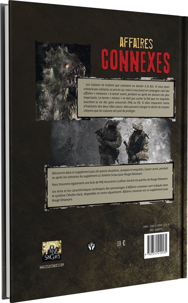 Affaires connexes contient tout ce qu’il faut pour créer une véritable campagne. Ce supplément contient des affaires « mineures » à lancer avant, pendant ou après les dossiers les plus importants. Le terme « mineur » ne doit pas cacher le fait que ces enquêtes touchent la vie des gens concernés (PNJ ou PJ). Si elles impactent moins d’habitants des deux villes sœurs, elles peuvent changer le destin de simples citoyens.