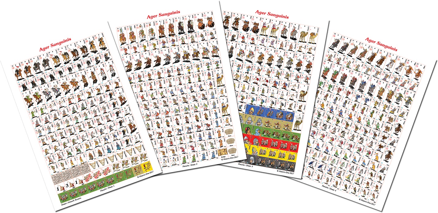 4 planches A4 recto-verso sur carton épais représentant des croisés, des chevaliers Hospitaliers, des Turcs et des Arméniens.