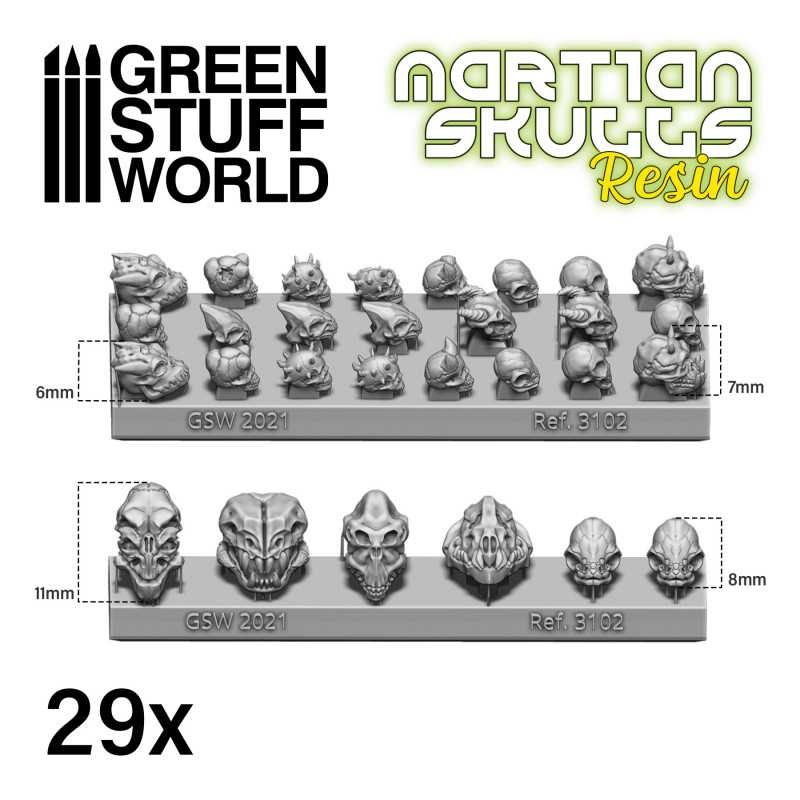 Ensemble de crânes d’aliens fabriqués en résine de haute qualité. Ce produit est livré non peint et est parfait pour les figurines de 25-28-54 mm (1:52, 1:48, 1:35). Idéal pour une large gamme de wargames tels que Warhammer 40k, Age of Sigmar, Blood Bowl, Necromunda, Confrontation, Star Wars Legion et bien d’autres. Comprend 2 jeux de tailles différentes. Non recommandé pour les enfants de moins de 10 ans.