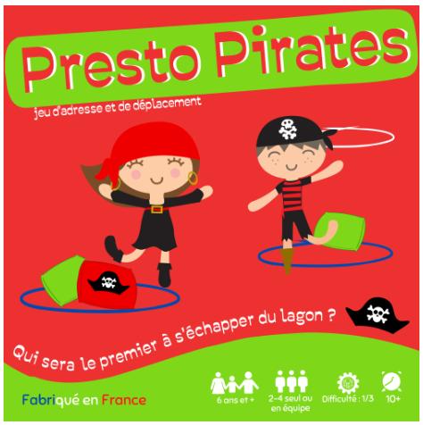 Dans Presto Pirates, les joueurs incarnent des pirates. Ils doivent sortir au plus vite du lagon en passant d’île en île. C’est à celui qui réussira le mieux ses lancers et qui réalisera les bons déplacements tactiques. Il faut aussi savoir gêner l’adversaire et à bien protéger son capitaine !!! Qui sera le premier à s’échapper ?