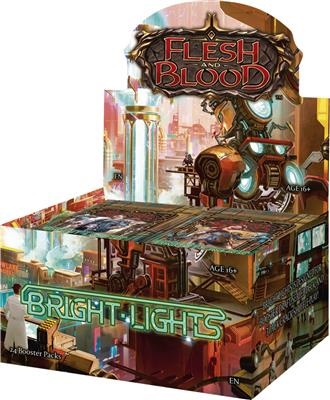 Bienvenue dans la Cité de Metrix, la métropole animée où l’ambition côtoie l’innovation, où l’avenir de Rathe est réinventé quotidiennement dans les centres de recherche de puissants conglomérats. Les héros en herbe sont attirés par les lumières vives de cette grande ville, aveuglés par les slogans des enseignes à néons qui indiquent que vous aussi pouvez « Devenir plus qu’humain ! » Bright Lights transporte le jeu Flesh and Blood aux frontières de l’innovation, avec le tout premier équipement qui commence la partie dans votre deck. Transformez votre équipement de base en équipement Évo à la pointe de la technologie et construisez la combinaison mech de vos rêves ! Cette édition purement Mécanologue propose une expérience de format limité unique. Les combinaisons de cartes innombrables conduisent à une grande sélection d’archétypes de booster draft, et le format sealed deck Bright Lights officiel est vraiment le plus mémorable, tout cela avec seulement QUATRE boosters ! Configuration produit : 251 cartes dans l’extension 16 cartes par booster 24 boosters par boîte Composition de l’extension : 1 fabuleuse, 7 légendaires, 46 majestueuses, 56 rares, 129 courantes, 12 jetons, 9 merveilles Répartition des raretés : Cold foil - 1 par boîte (remplace un jeton) Rainbow Foil - 1 par booster Rare ou supérieure - 2 par booster (1 rare + 1 rare ou majestueuse) Courantes - 11 par booster Jeton - 1 par booster Jeton / Emplacement développement - 1 par booster