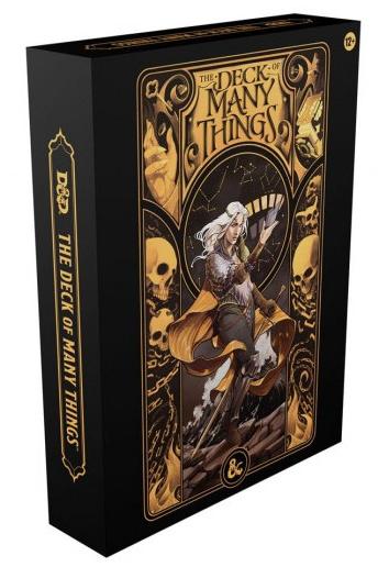 En anglais : The ultimate magic item for the world’s greatest roleplaying game. The Deck of Many Things is a famous Dungeons & Dragons magic item whose effects are as spectacular as they are unpredictable. Within this box, you’ll find The Book of Many Things, which illuminates the deck’s mysteries and provides everything Dungeon Masters need to use it in their campaigns. This book includes advice, adventure locations, and new monsters for Dungeon Masters, as well as character options, magic items, and organizations for players, all inspired by the deck. This set also includes lavishly illustrated cards for The Deck of Many things, including additional cards that triple the deck’s size, allowing you to build the perfect deck for your campaign. An accompanying guidebook shows how to use the cards as a traditional oracle deck or to create D&D adventures inspired by the cards. Contents : The Book of Many Things (192-page hardcover)—A book for players and Dungeon Masters alike with content that can be dropped into any campaign, all thematically tied to The Deck of Many Things The Deck of Many Things (66-card deck)—Own one of D&D’s most legendary magic items with a deck containing the original 22 cards with updated art, plus 44 additional cards that can be substituted to customize your play experience The Deck of Many Things Card Reference Guide (80-page hardcover)—Deck guide booklet showcasing each card in the expanded deck and a variety of ways the deck can be used Deck Box—Sturdy custom box to store your deck and deck reference guide