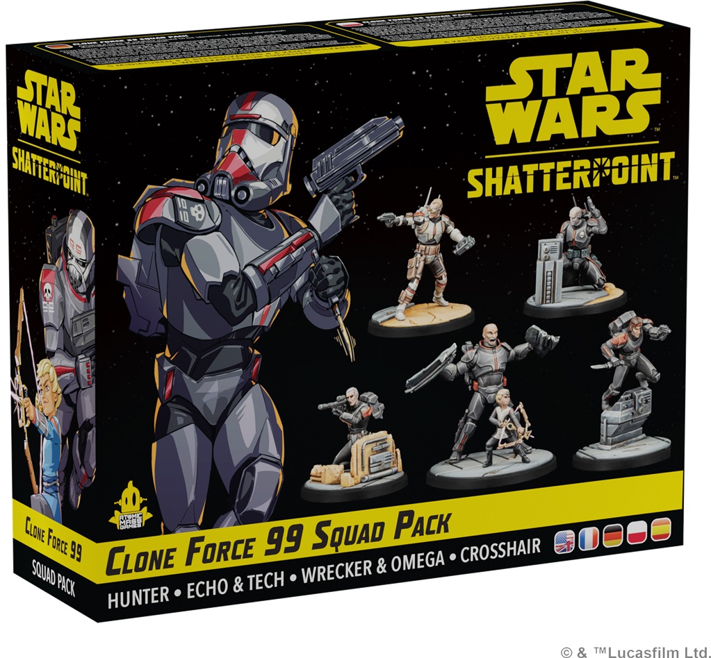 Au sein d’une armée de soldats clonés afin d’être parfaitement identiques, rares sont ceux qui se distinguent pour devenir uniques ! Autrefois connue sous le nom de la Clone Force 99, cette unité expérimentale de soldats clones défie toutes les attentes, des mutations génétiques leur offrant des capacités extraordinaires. Adoptant des noms qui personnifient leurs rôles, le Bad Batch est commandé par Hunter, reconnu pour ses sens affutés et son expertise pour la traque. Tech est leur expert en systèmes, exploitant son intelligence surdéveloppée pour soutenir l’équipe en tant que pirate informatique et spécialiste de l’intrusion. Le groupe est complété par Crosshair, le tireur d’élite, Wrecker, un combattant au corps-à-corps inarrêtable et Echo, un ancien soldat CRA cybernétiquement augmenté. Alors que la République se transforme en un Empire Galactique, le Bad Batch est forcé d’improviser pour survivre, devenant alors des fugitifs. Ils sont rejoints par une jeune assistante médicale nommée Omega, elle-même issue d’une expérience de clonage. Assurer sa sécurité motive d’autant plus le Bad Batch à trouver sa propre voie dans une galaxie de plus en plus hostile. Contenu 5 figurines, 4 cartes Posture de combat, 4 cartes Ordre, 4 cartes Statistiques