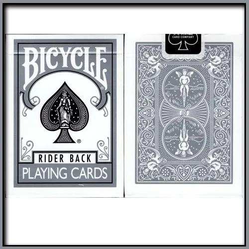 C’est exactement le même jeu de carte qu’un bicycle poker bleu ou rouge classique, mais de couleur gris, vous pouvez voir ci dessous toute la collection des jeu bicycle poker classique. Vous pouvez utiliser ces cartes pour des effets de changement de couleur, mais vous pouvez également les utiliser comme un jeu ordinaire. Naturellement, le boîtier est également gris.