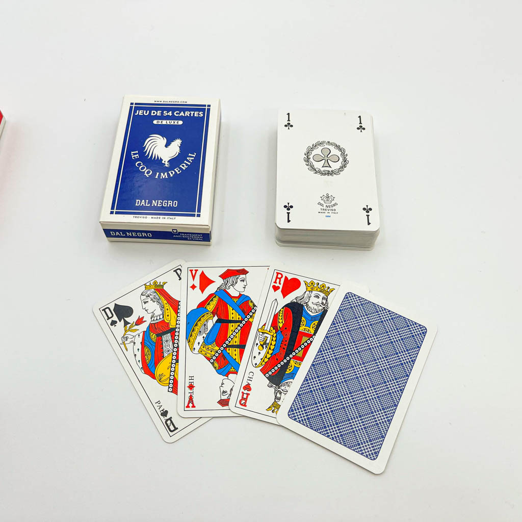 Indémodables, les cartes à jouer sont l’un des objets ludique préférés pour passer du temps entre amis et en famille. Les 54 cartes de luxe pour jouer par exemple au Bridge ou au Rami, sont fines, toilées et plastifiées pour garantir une excellente glisse. Grâce au renforcement par le toilage la longévité des cartes est également plus longue. Les Cartes Dal Negro sont traitées avec un produit Anti bactérien et viral.