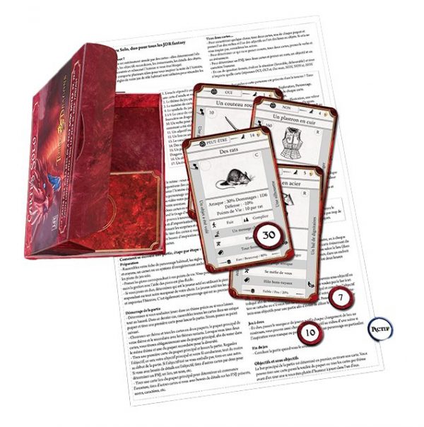 - 110 cartes pour jouer seul ou à deux à Terres-Dragons ou à n’importe quel autre jeu de rôle de votre choix