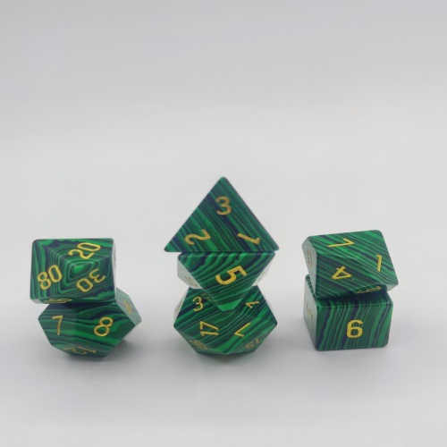 Dés Pierre Semi Précieuse - Lot de 7 dés avec boite en métal - pierre de création Malachite