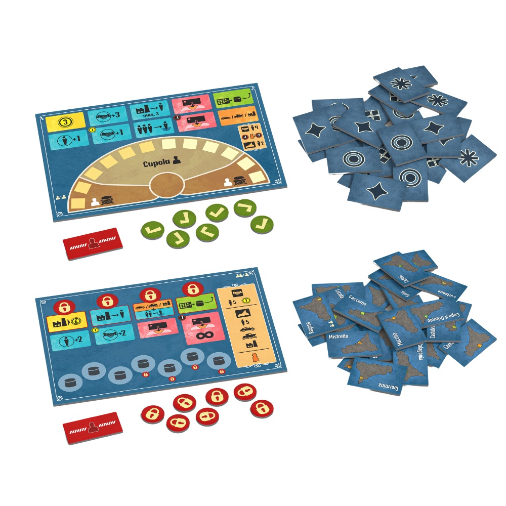 Prépare toi à explorer des options de jeu étendues et à profiter de La Famiglia de manière totalement nouvelle. Avec ces ajouts, tu découvriras continuellement de nouveaux défis et stratégies à maîtriser. De plus, certaines mécaniques inspirées de 7 Wonders Duel seront intégrées !