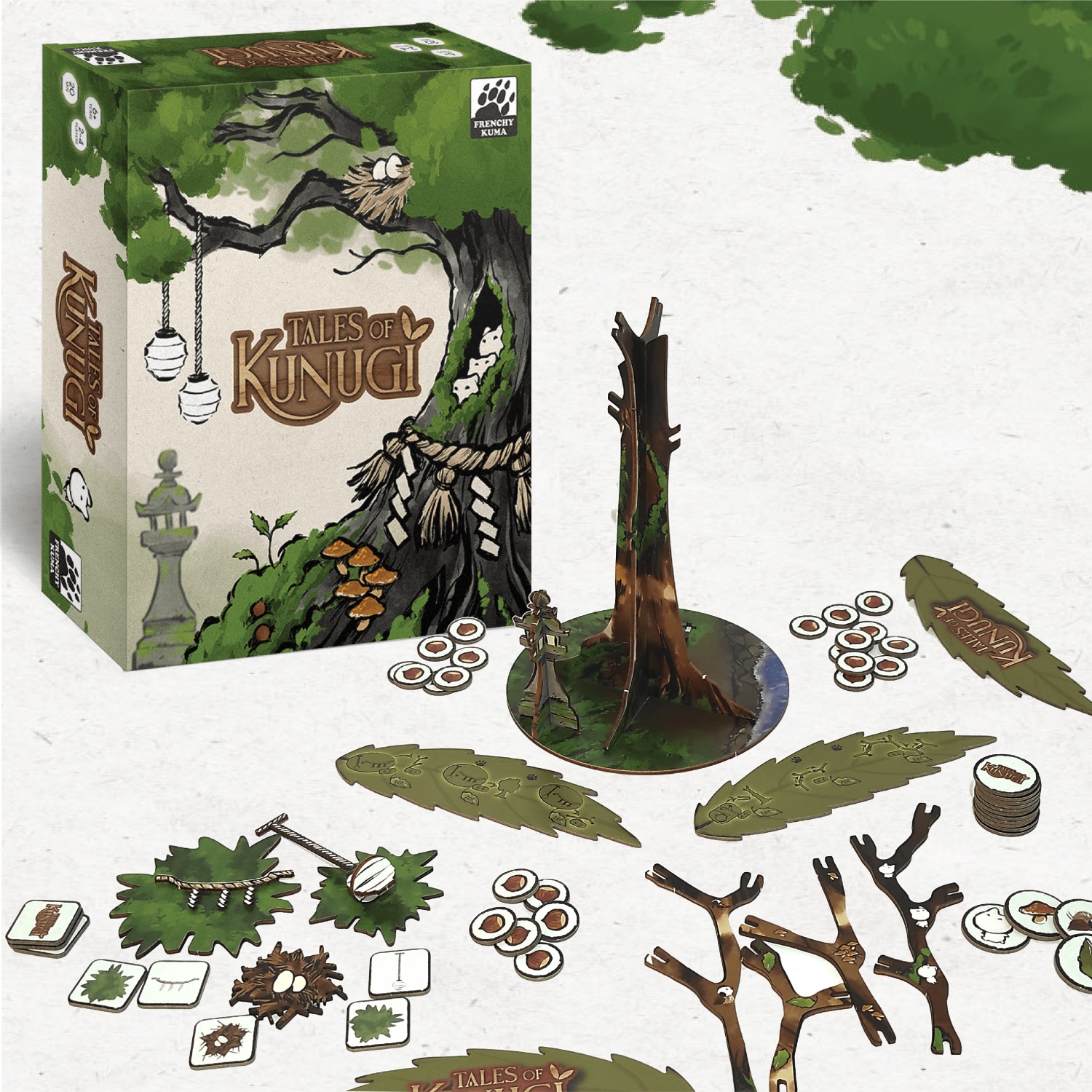 Tales of Kunugi est un jeu collaboratif où la dextérité, l’observation et la stratégie d’équipe sont nécessaires pour faire grandir votre Kunugi et faire gagner des points à votre équipe. Les joueurs, réunis en équipe de Kodama, feront grandir et décoreront le Kunugi, du tronc aux branches. L’ajout de rameaux à l’arbre permettra d’obtenir davantage d’options de décorations et d’accomplir des objectifs individuels et d’équipe. À la fin de la 5e année, chaque objectif accomplie apportera des points de victoire pour l’équipe, ce qui déterminera la splendeur du Kunugi. Plus les points de victoire seront élevés, et plus majestueux sera votre Kunugi.