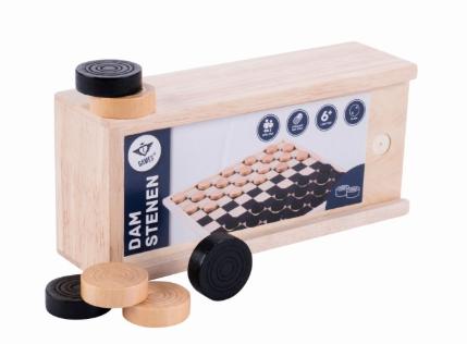 Pions de Dames Françaises Moulurés 30mm. Contient 20 pièces en bois et un coffret de rangement.