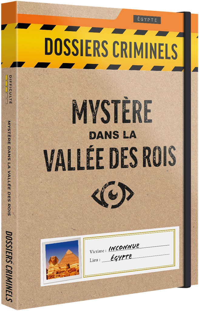 Ce dossier criminel contient tous les éléments pour résoudre ce meurtre. Un guide des fouilles, des transparents de la vallée des rois, des papyrus, un article de presse, des croquis, des contenus audio… etc.