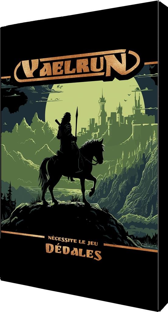 Voilà tout ce qu’il vous faut pour le jeu de rôles Dédales. Vous y trouverez un livret présentant le Vaelrun, une région coupée en deux par des terres maudites ; un livret campagne de trois scénarios au cœur de cette contrée ; un livret scénarios contenant trois autres aventures indépendantes (mais intégrables à la campagne) ; une carte double format du Vaelrun ; 12 fiches de personnages prêts à jouer, 8 fiches de boss à affronter.