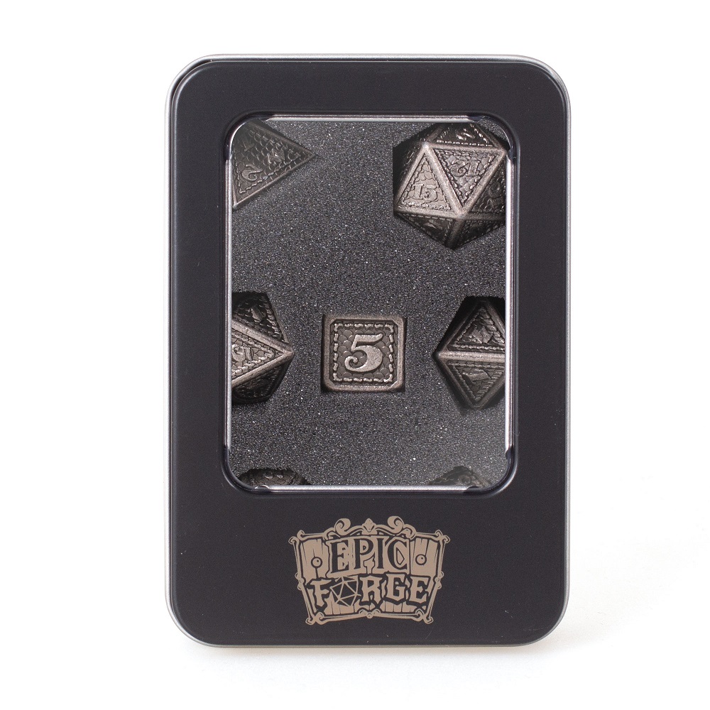 Set de 7 dés métal dans leur boite métal Epic Forge