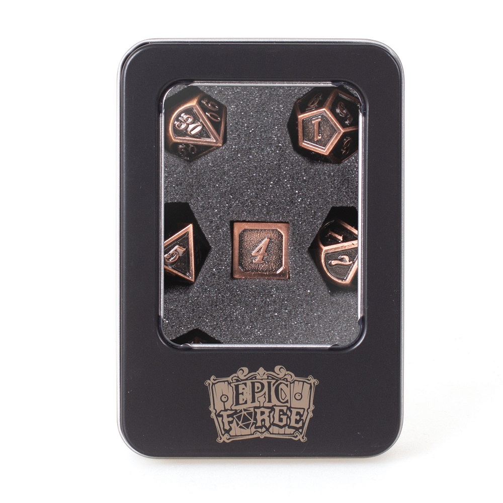 Set de 7 dés métal dans leur boite métal Epic Forge