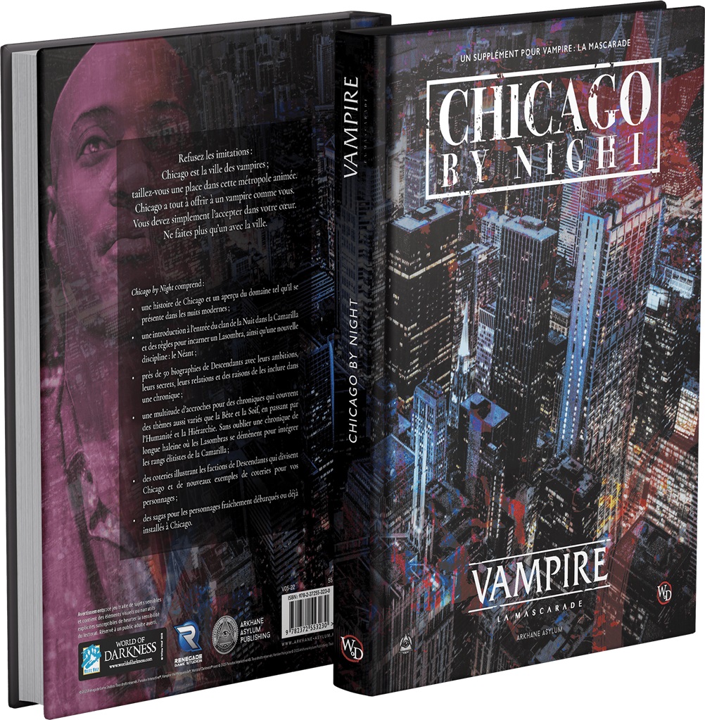 Chicago, c’est LA ville des vampires, la métropole la plus peuplée de créatures de la nuit. Cette nouvelle édition de ce supplément, pour la 5ème édition de vampire, propose une histoire de Chicago ; les secrets des Lasombra et les règles pour les incarner ; 50 biographies de Descendants avec leurs motivations, leurs relations, etc. ; des accroches de chroniques ainsi qu’une chronique de longue haleine sur la thématique des Lasombra ; des coteries de factions de Descendants et des exemples de coteries ; des sagas pour les personnages arrivant à Chicago.