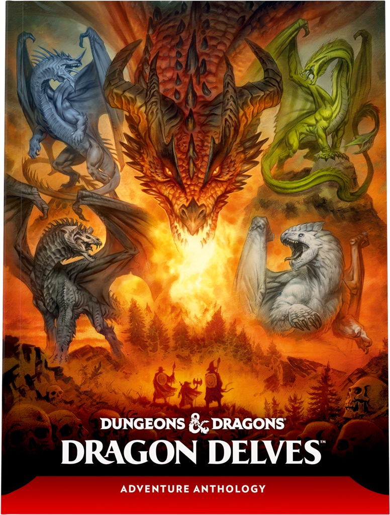 Meet the dragons of D&D in Dragon Delves, a collection of 10 dragon-themed adventures for characters level 1 through 12. Featuring artwork rendered in 10 unique styles, these ready-to-play adventures include streamlined prep and quick start guides for Dungeon Masters. Delve into mysterious dungeons, explore captivating fantasy locations, and come face to face with all the chromatic and metallic dragons, each with unique temperaments, alignments, and magic.
