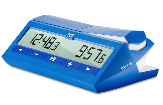 Conçu pour les jeux d’échecs rapides, DGT1500 est le chronomètre de jeu idéal lorsque chaque seconde compte. Ce modèle est unique grâce à son chiffre supplémentaire affichant les dixièmes de seconde, une fonction idéale pour suivre le temps de jeu restant. L’affichage clair comme du cristal est facile à lire pendant les parties intenses.